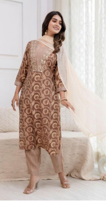 100% cotton fabric with straight kurta / plazo and dupatta set.
