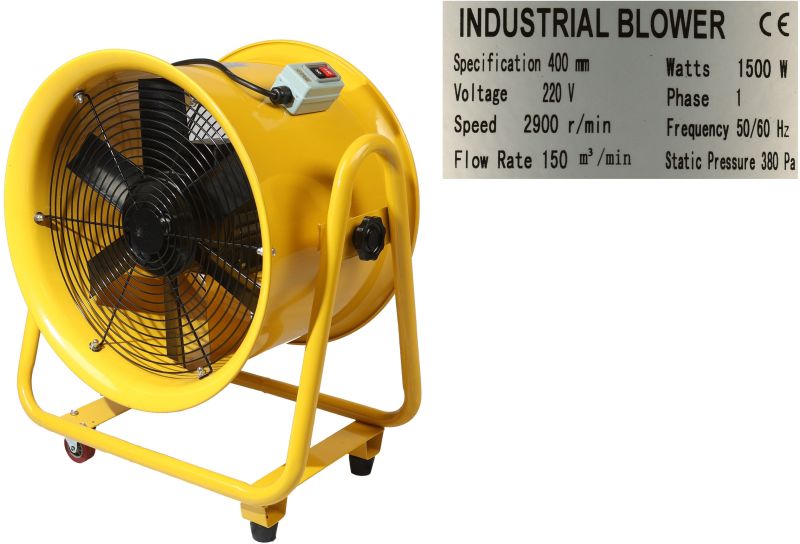 Bell-mouth type casing – engineered for high airflow efficiency and noise reduction.16-inch (400mm) industrial-grade electric ventilation blower for high-capacity airflow in large spaces.