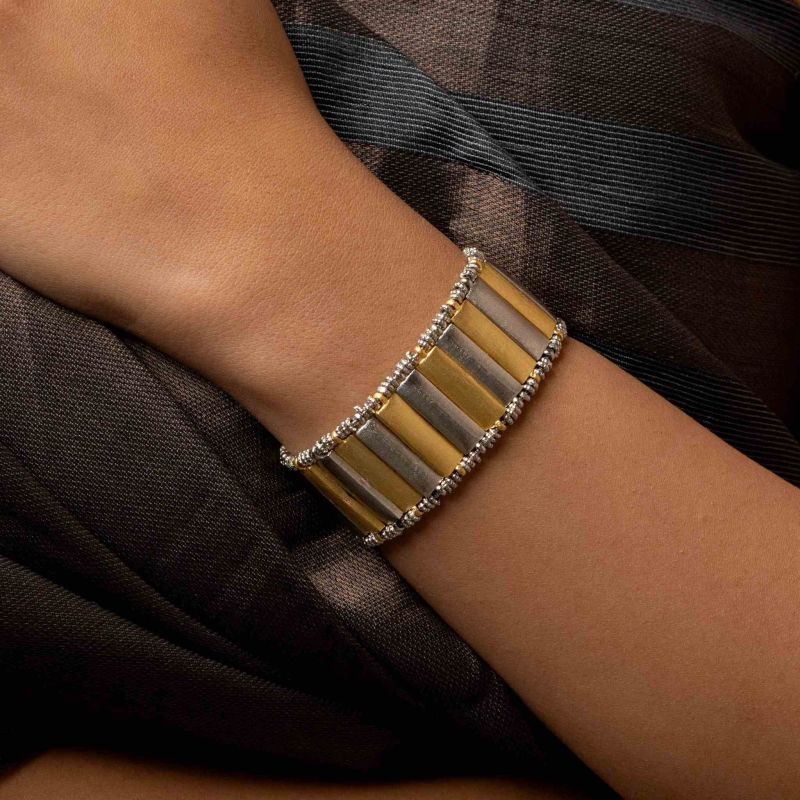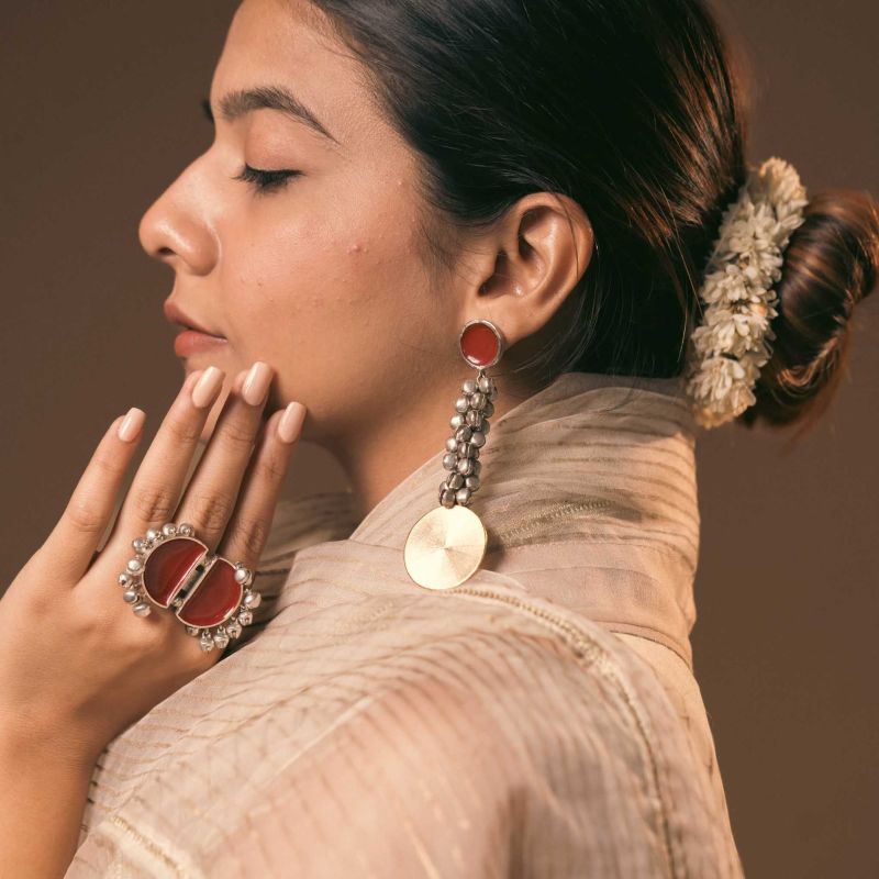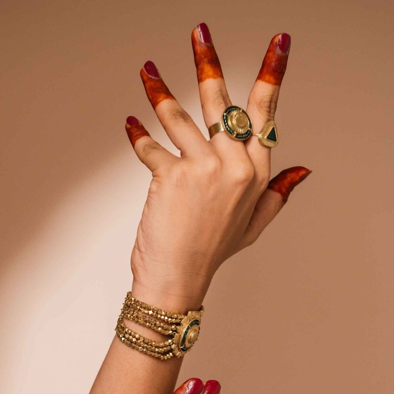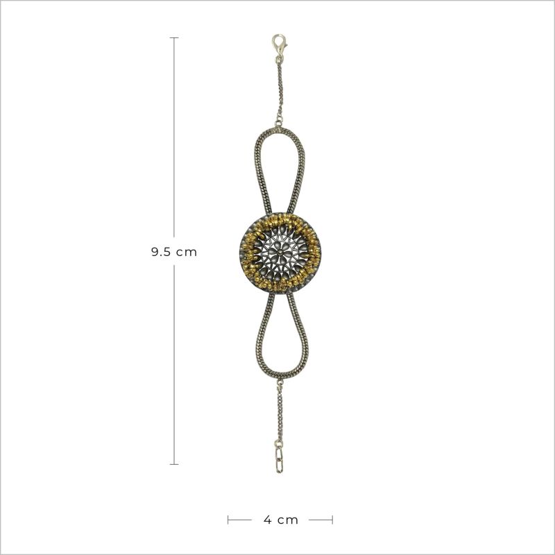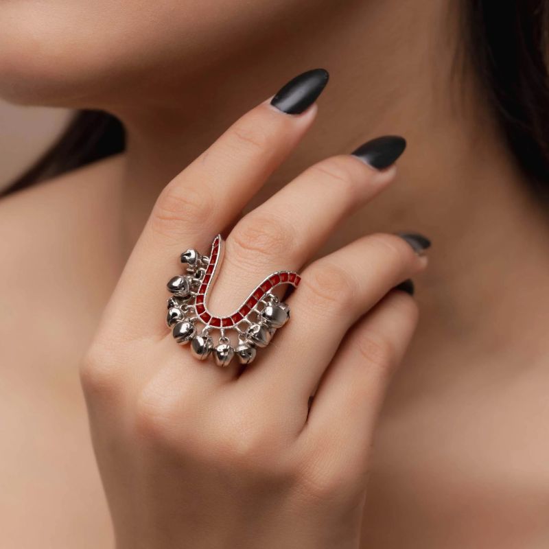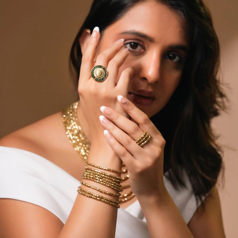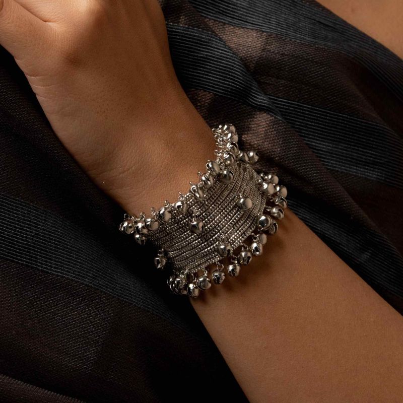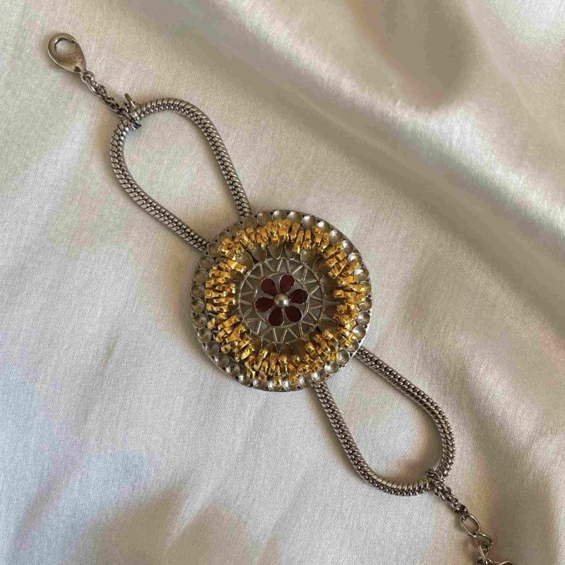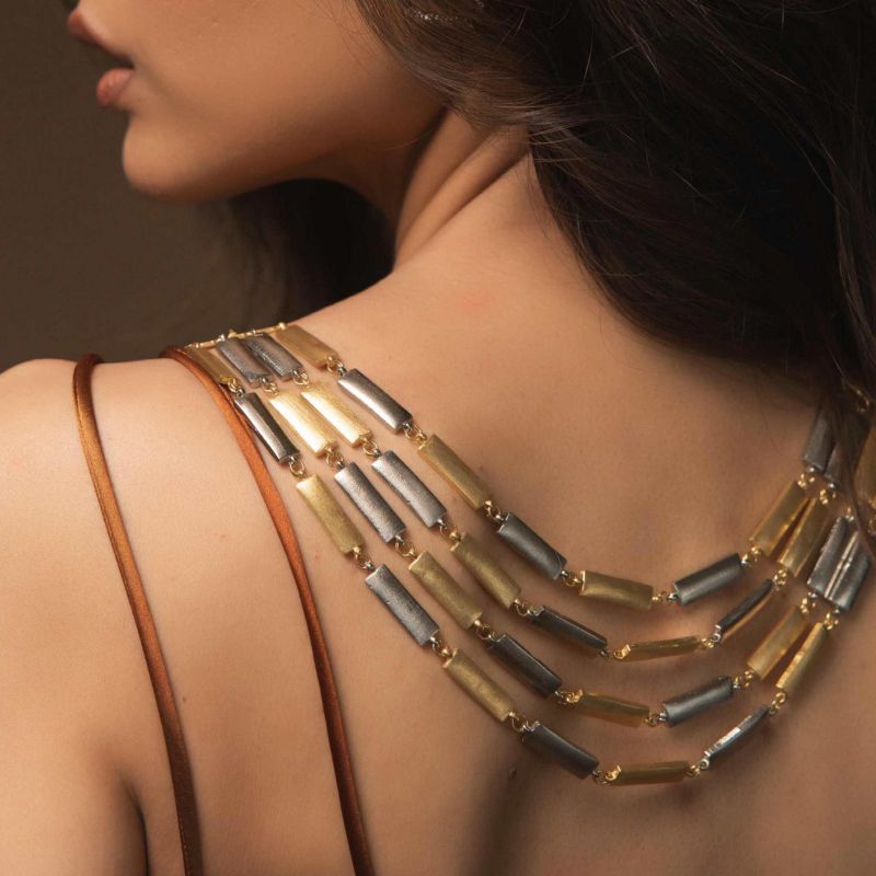 INSPIRATION: Dive into the divine dance of elegance and artistry with our latest collection, RAAS-LEELA. Each piece in this handcrafted brass jewellery collection is a tribute to the timeless beauty and playful spirit of tradition; made by skilled artisans using silver plated brass and sapphire blue enamel. With every piece, you carry a story of love, devotion, and timeless artistry. Let RAAS-LEELA be your statement of style and grace. Just like the Raas Leela of Krishna and the Gopis, this collection is all about connection, beauty, and joyous celebration. Wear these pieces as a reminder of the divine playfulness and timeless charm. DESIGN: This enamelled choker chic is handcrafted using high quality silver plated brass and sapphire blue enamel has a dynamic and eye-catching effect. Each layer of chain is arranged to drape effortlessly and elegantly around the neck. Whether it 's a festive gathering, a wedding, or a casual day out, RAAS choker will most definitely add that touch of elegance and sophistication to your look. STYLE: Silver Plated Brass Handpainted Enamel Handcrafted Statement Jewellery