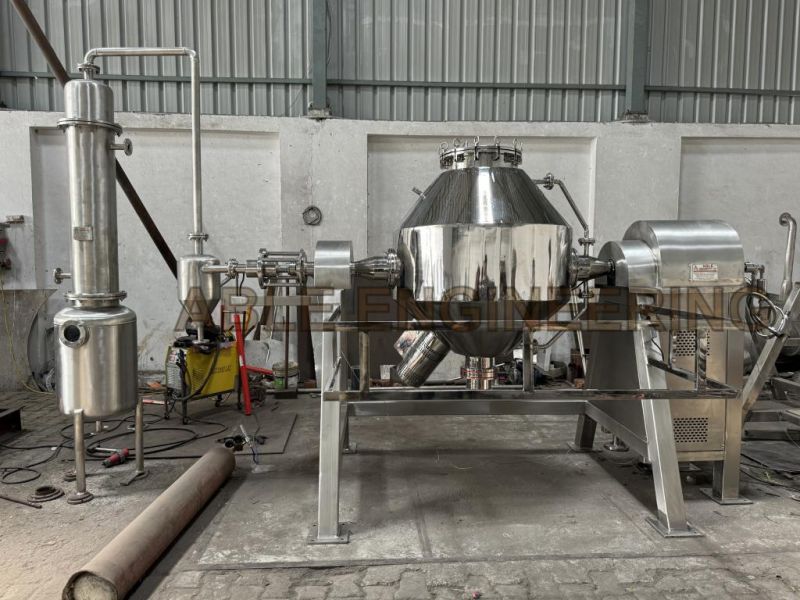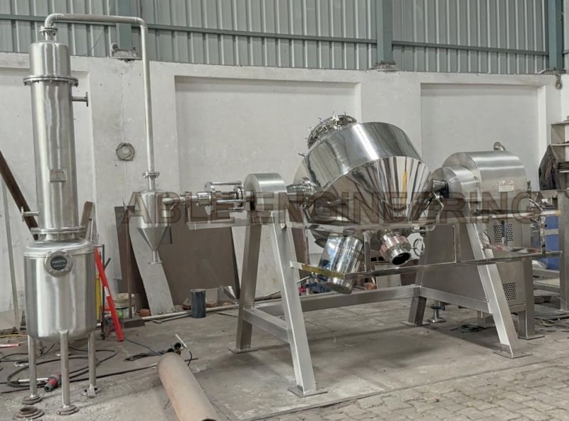 Rotocone Vacuum Dryer (RCVD) also called Rota Cone Vacuum Dryer is suitable for drying of materials which cannot resist high temperature, Material which are easily oxidized, volatile materials which should be retrieved, materials strong irritant and poisonous in nature. Able Engineering Roto-cone dryer with improved technology integrates during operation under vacuum. The roto cone dryer facilities, enhanced drying efficiency, low-temperature operation, and economy for the process of total solvent recovery. It helps cGMP-based working by achieving optimum dust control while offering advantages of efficient charging and discharging of materials. The drying unit equipped with lump breakers initially breaks large lumps and subsequently powders them (in a single cone). The rotary action of the dryer together with the mechanical action of the breaker cuts down drying time and gives a lump-free product.