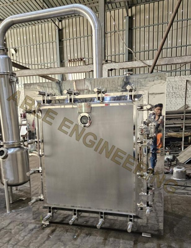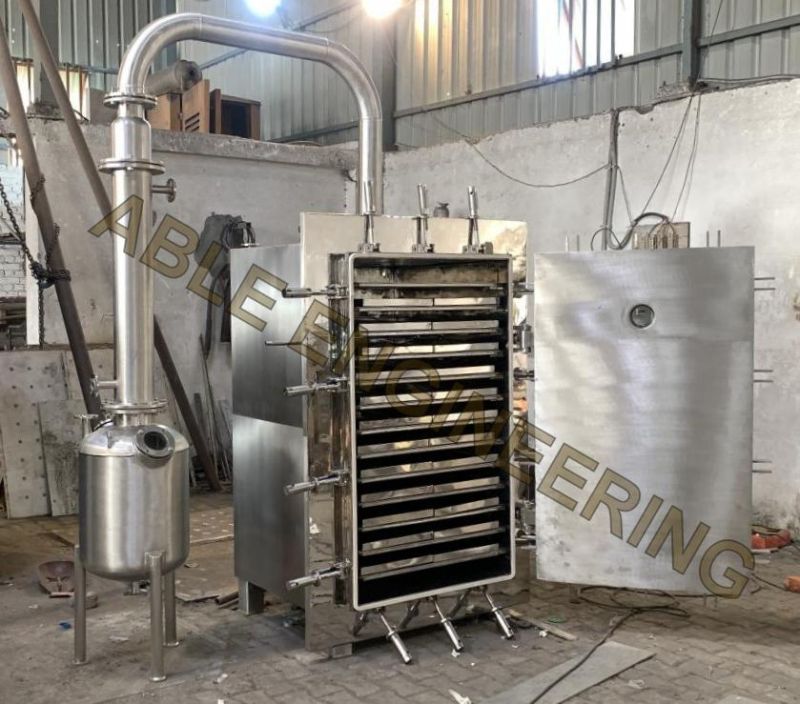 Vacuum Tray Dryer (VTD) is suitable for drying of thermally sensitive materials easily resolved, polymerized, or deteriorated under higher temperature widely used in Herbal Extraction Plants and Pharmaceutical Plants. Sterilization can be conducted before the drying process, during which no matter is allowed to enter the product. Able Engineering manufactures the most qualitative Vacuum Tray Dryer that is well known for its high quality and efficiency levels. This gamut of products is in high demand in the market for heating and drying up of various items involved in the manufacturing processes of several industries.