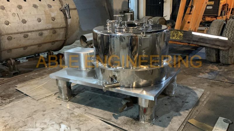 Able Engineering is a leading manufacturer of a four-point centrifuge machine. A centrifuge is the most energy-efficient machine that separates a solid from a liquid. At high rotational speed, four-point centrifuge separates components of different densities. Centrifuge machine is a unique energy-efficient machine that works by spinning a vessel containing the material to be separated at high speed, the centrifuge spins at high speeds and pushes the heavy particles usually the solids to the peripheral side of the vessel in addition to swinging its contents around and using their inertia to make them separate. Able Engineering is a manufacturer, supplier, and exporter of highly durable and energy-efficient centrifuge machines in India.