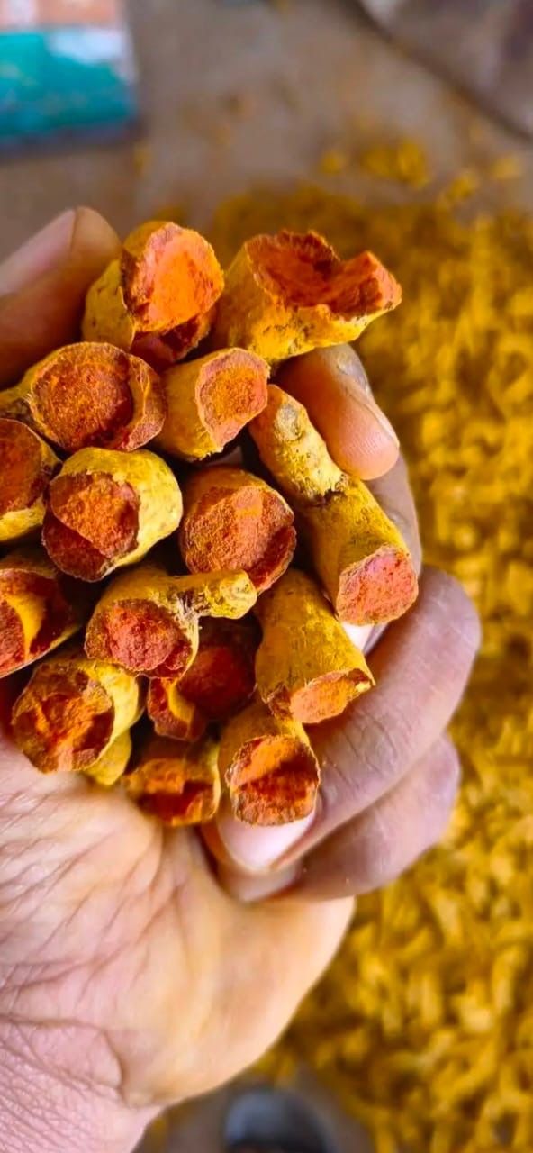 Form: Turmeric fingers are the whole, dried rhizomes (underground stems) of the turmeric plant after cleaning, boiling, and drying. They are not ground into powder—the “finger” refers to the shape of the individual rhizome pieces.