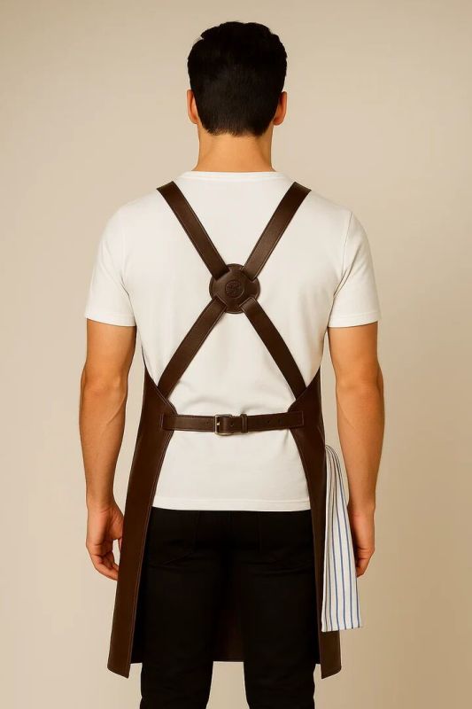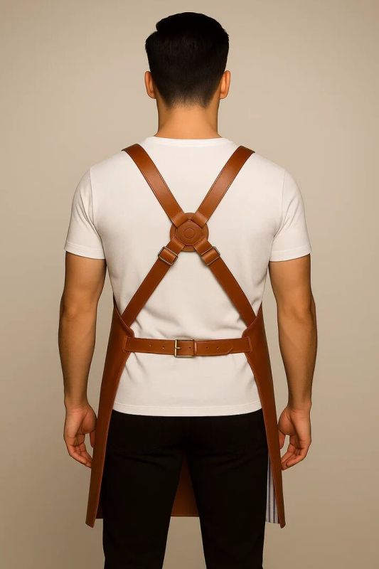 This apron is exclusively hand crafted by leather industry workers based offshore and Industry professionals who have dedicated their lives to make a high-end leather product. These leather Aprons are Handpicked and thoroughly checked to pass for any quality checks and assurance. High quality cow and buffalo leather has been used to make these leather aprons. Every detail like the Rivets and adjustable brass buckles have been carefully thought of to complete the design of the apron Best recommendation is to wipe with a damp cloth or use any leather maintenance products to clean and prevent the ageing of leather. In the case of suede leather, use a soft-bristle brush and When brushing, stroke gently in the direction of the nap to maintain a smooth, uniform look The Apron comes with a pocket on the front and in the middle along with 2 utility loops on either sides for tea towels, tongs or whatever you imagination leads you to. The apron is one size fits most. It will suit anyone with a height of 5 foot 6 inches and up to 6 feet 3 inches tall. The Cross over shoulder straps and the waist straps are adjustable to fit you perfectly.