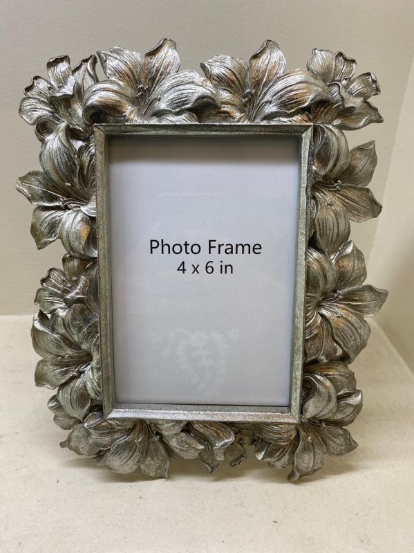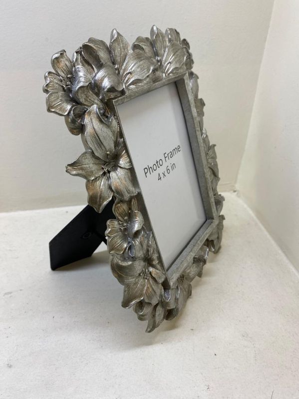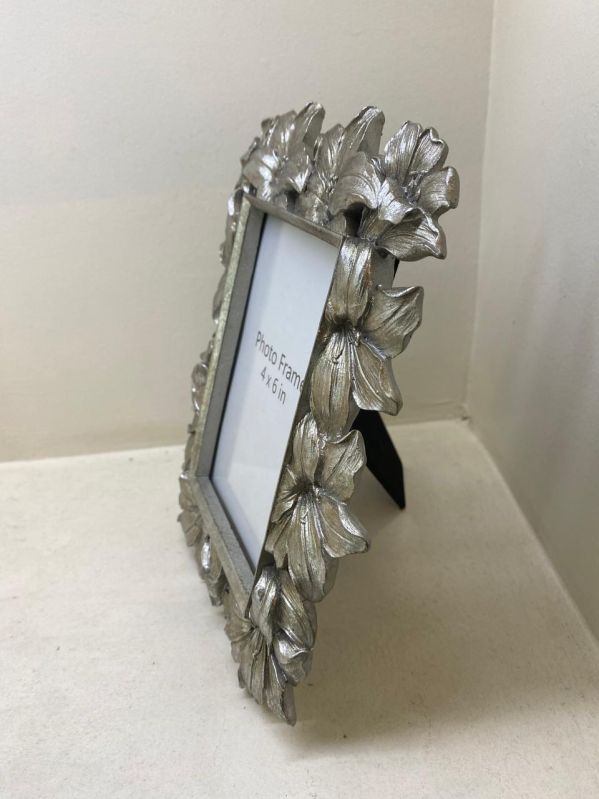 "Adorn your space with this lovely silver-plated photo frame featuring a delicate flower design. Its elegant and intricate details beautifully complement your cherished memories, adding a touch of sophistication and charm to any room decor."