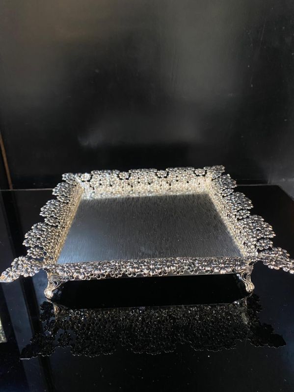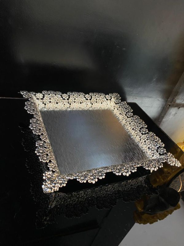 "Elevate your dining experience with this elegant silver-plated square platter featuring a beautiful flower design. Its sleek shape and intricate details make it perfect for serving appetizers, desserts, or main courses, adding a touch of sophistication and charm to any gathering or special occasion."