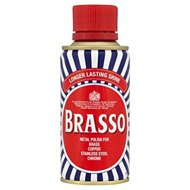 Brasso is a metal polish designed to remove tarnish from brass, copper, chrome and stainless steel. It is available either directly as a liquid or as an impregnated wadding pad.