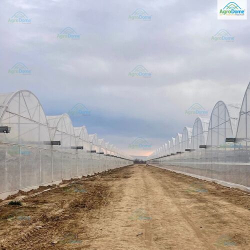 Dimensions customized to your area. Width from 6 to 12 meters. Lengths up to 4000 sqm. Dome height up to 6.5 meters for better airflow.