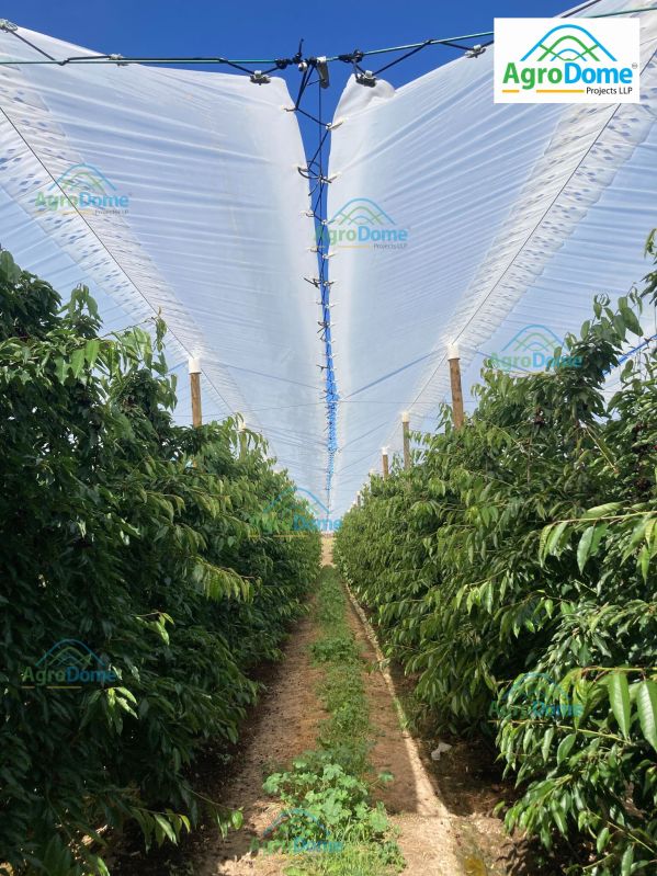 \nAgroDome Projects LLP offers the A-Roof Shade Net House (Anti-Rain), specially engineered for protected cultivation in grape and cherry orchards. This advanced net house ensures optimal protection from rain and harsh sunlight, creating the perfect environment for fruit production.