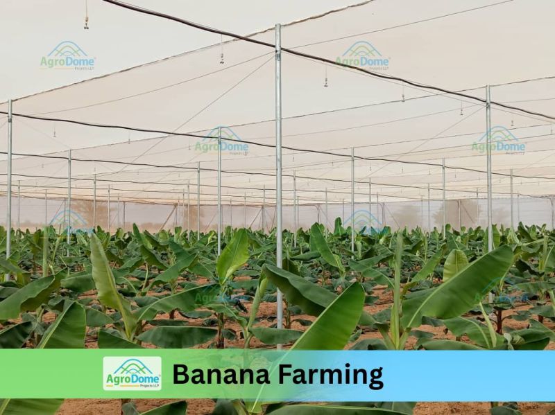 Shade Net House for Banana Orchards Farming (Wire Rope Flat Roof Shade Net House) by AgroDome Projects LLP