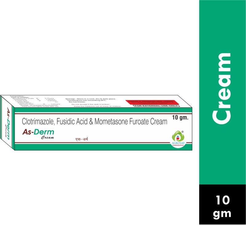 AS DERM Cream is a powerful triple-action dermatological formulation designed to treat fungal, bacterial, and inflammatory skin conditions. It combines the antifungal action of Clotrimazole, the antibacterial strength of Fusidic Acid, and the anti-inflammatory effects of Mometasone, making it ideal for treating complex skin infections with inflammation and itching.