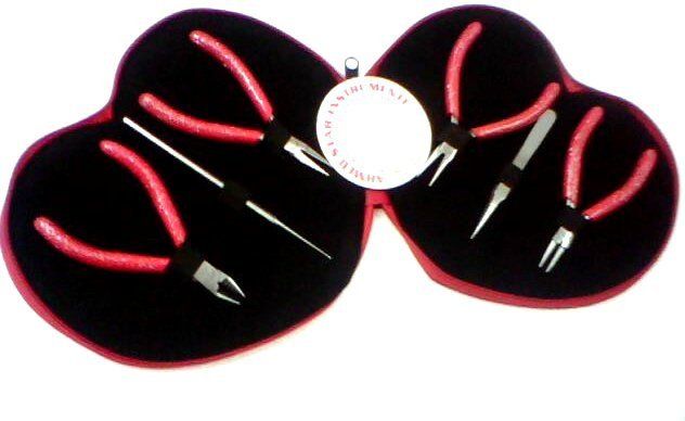 Our best quality jewelry making tools sets are made with japanies stainless steel and glittering handle star shine & non slip foam handle grips with verity of different colors insert with 4 pliers & 1 tweezers & 1 bead awl for making jewelry best. dull finish pliers & colored match tweezers and handle grips same as leather set.