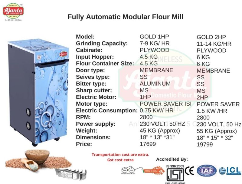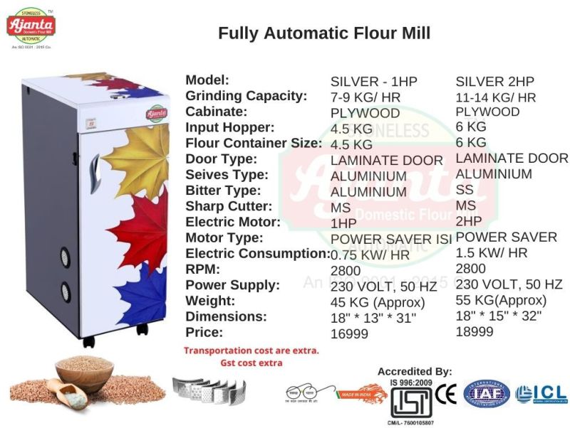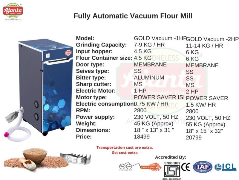 We offer a complete product range of 2in1 Domestic Flour Mill, 1hp Vacuum Atta Chakki, Atta Chakki 1hp Vaccum Manufacturer in Mumbai, 1hp Silver Vacuum Atta Chakki and 2hp Vacuum Atta Chakki