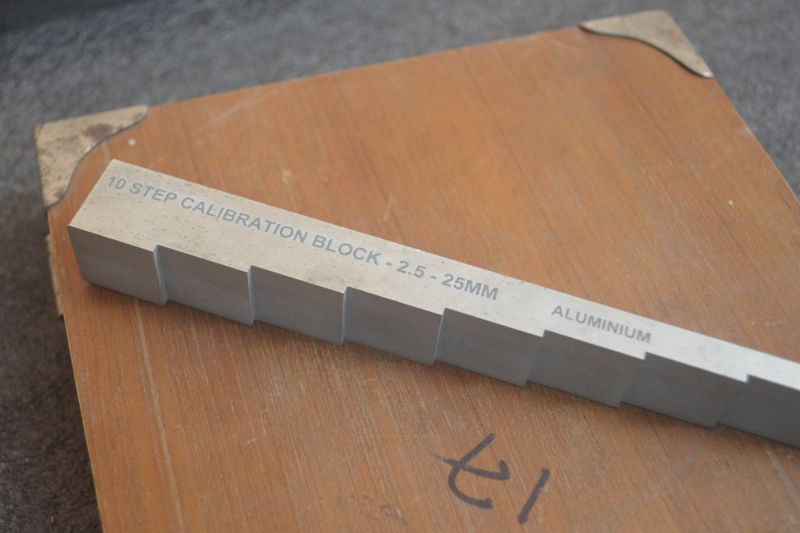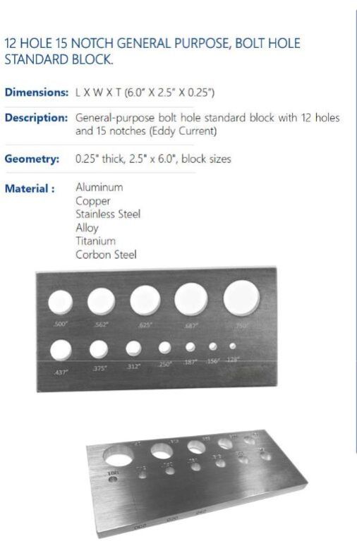 description:1. used to produce area amplitude and distance amplitude plots for typical beam transducers, as well as to assess the resolution and sensitivity capabilities. contains 10 flat-bottom holes with diameters of 3/64", 5/64", and 8/64. metal can travel up to 1.250 inches in one direction. according to astm e428.