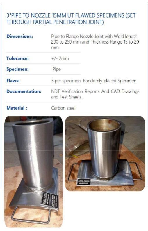 3"PIPE TO NOZZLE 15MM UT FLAWED SPECIMENS (SET THROUGH PARTIAL PENETRATION JOINT).
