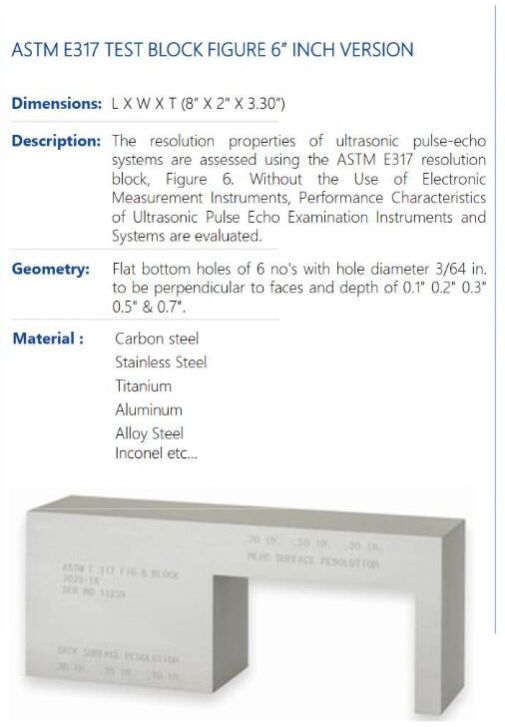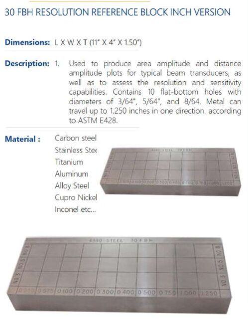 30 fbh resolution reference block inch version.dimensions:l x w x t (11 x 4 x 1.50).