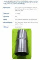 4 pipe to pipe ut flawed specimens (as per bindt pcn classification specimens).dimensions:pipe to pipe butt weld joint with pipe 100mm dia. and 150mm wide on either side of the weld thickness 15mm.