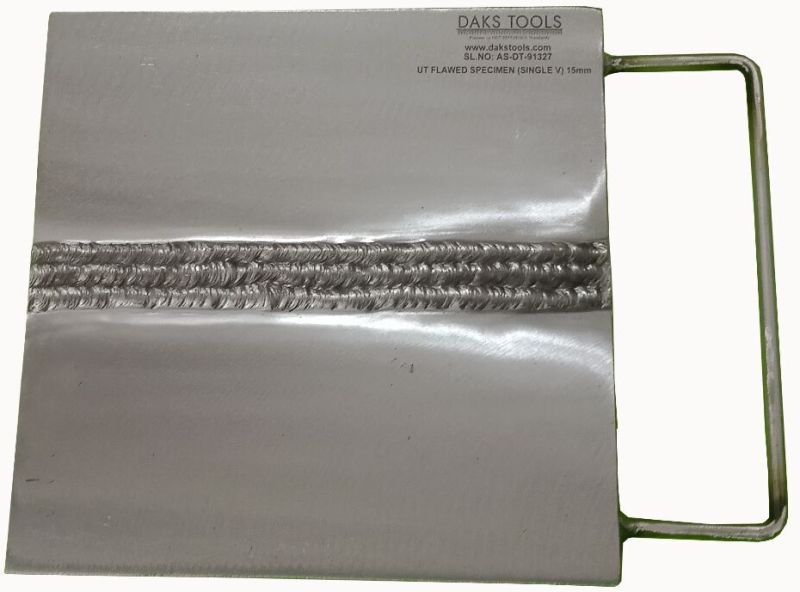 15mm single 'v plate to plate advanced ut flawed specimens (as per iso 9712 classification specimens).dimensions:plate to plate single v butt weld 300mm long and 150mm wide on either side of the weld thickness range >10mm to 15mm.