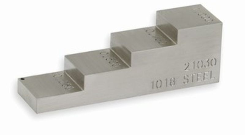 90 curved 5-step test block inch version.dimensions:l x w x t (3.75 x 1 x 0.10, 0.50).