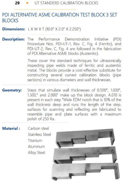 Description:For use with Phased Array instruments used for sizing OD and ID-connected cracks, the Phased Array Calibration Standard Notch Block has been especially created.
