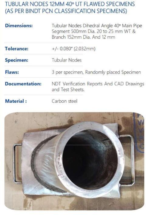 TUBULAR NODES 12MM 40 UT FLAWED SPECIMENS (AS PER BINDT PCN CLASSIFICATION SPECIMENS).