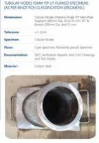TUBULAR NODES 12MM 30 UT FLAWED SPECIMENS (AS PER BINDT PCN CLASSIFICATION SPECIMENS).Dimensions:Tubular Nodes Dihedral Angle 30 Main Pipe Segment 508mm Dia. 20 to 25mm WT & Branch 152mm Dia. And 12mm.