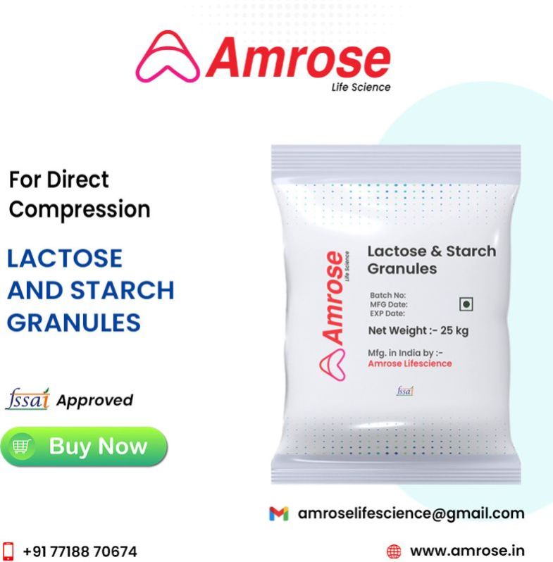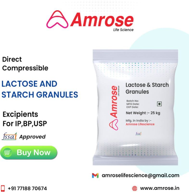 Lactose Granules and Starch Granules DC Grade are top-tier excipients for direct compression tablet production. Lactose Granules provide excellent flow properties and tablet consistency, while Starch Granules enhance flowability and minimize dust. Together, they improve manufacturing efficiency and ensure high-quality, stable tablets for pharmaceutical and nutraceutical applications,