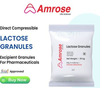 Lactose Granules DC Grade are premium, flow-enhanced lactose designed for direct compression tablet production. They ensure smooth processing, minimal dust, and consistent tablet quality. Ideal for pharmaceutical and nutraceutical applications, these granules optimize manufacturing efficiency and improve tablet hardness and stability, making them a reliable choice for diverse formulations.