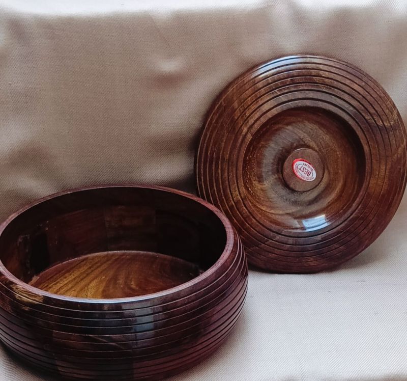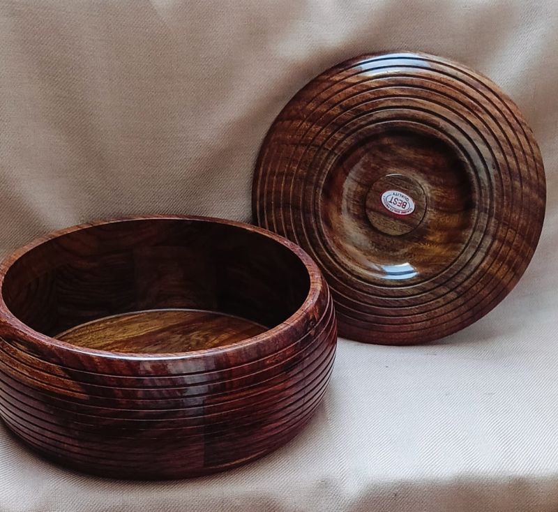 Handmade in India, this Sheesham Wooden Bowl With Lid is a versatile piece crafted from high-quality Sheesham wood. The plain pattern and rich brown color make it suitable for serving food or as a decorative item. Add a touch of elegance to your dining table with this unique and functional bowl.
