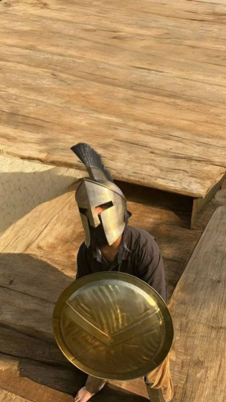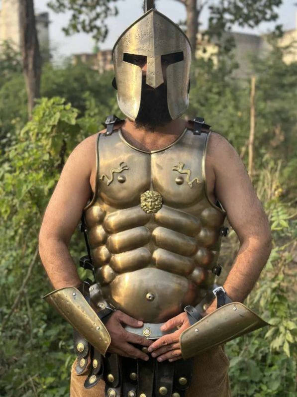 300 Movie Handmade Medieval Greek Costumes Muscle Jacket With Armor Spartan Helmet, Shield, Arm /Leg Guard / Halloween/ Christmas Gift Home