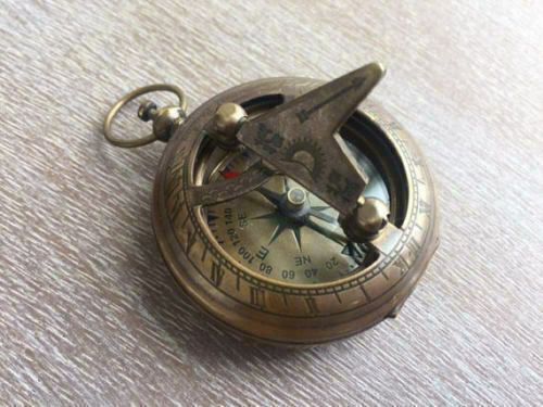 Antique Finish Brass Sundial Compass -Necklace Pendant -Old Vintage Pocket Style