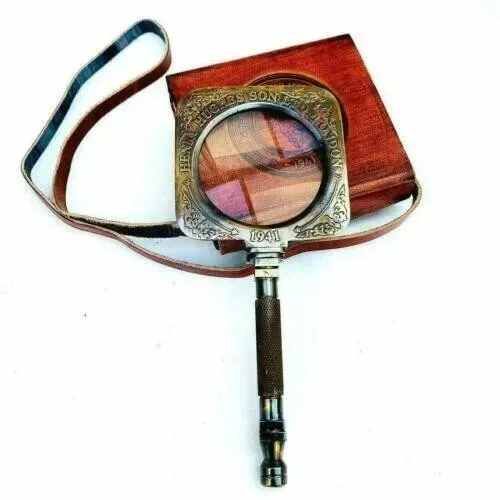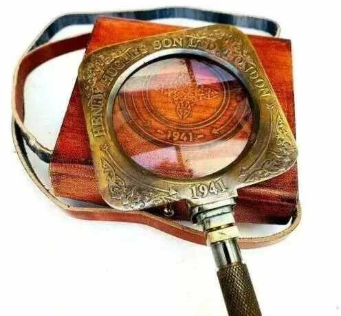 This antique vintage brass Henry Hughes desk magnifier is a beautiful addition to any desktop collection. Handmade in India, this folding magnifying glass is both functional and decorative. Crafted from high-quality brass, this piece has a vintage feel and exudes old-world charm. Perfect for collectors of pens and writing instruments, this desk magnifier is a unique find. Its intricate design and attention to detail are sure to impress. The magnifying glass is perfect for reading small print or examining detailed objects, making it both practical and beautiful. Add it to your desktop collection or give it as a gift to a fellow collector.