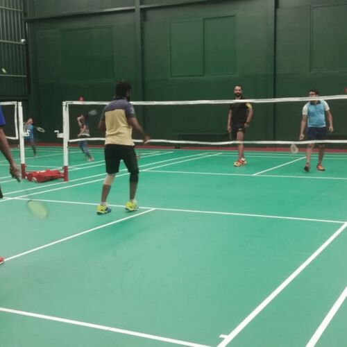 synthetic badminton court flooring comnstration