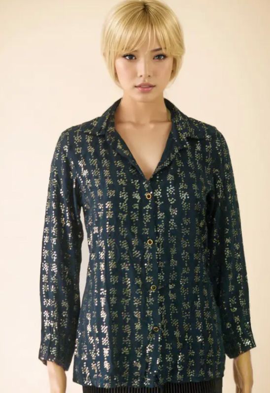 Our product range contains a wide range of Black Embroidered Sequin Viscose Shirt