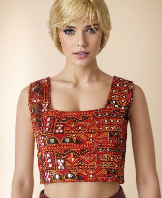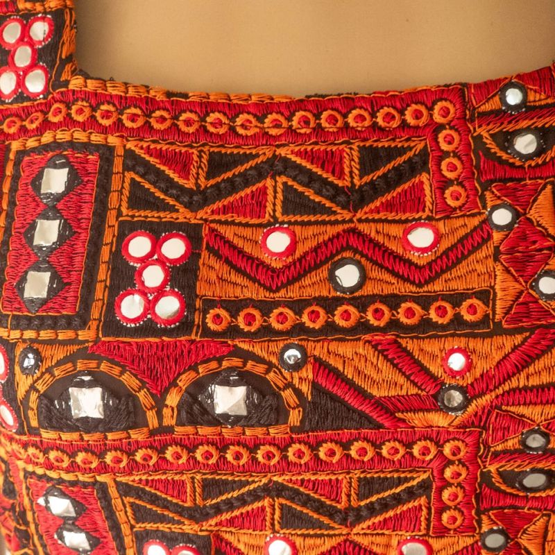 Modern take on a red Banjara faux mirror work crop top. Be like no one else The fabric colors and pattern are completely customizable for orders over 50 pcs.