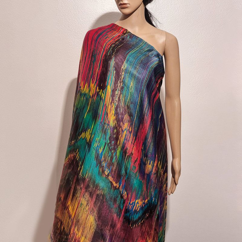 This print is available on viscose, silk, cotton, wool, velvet and polyester