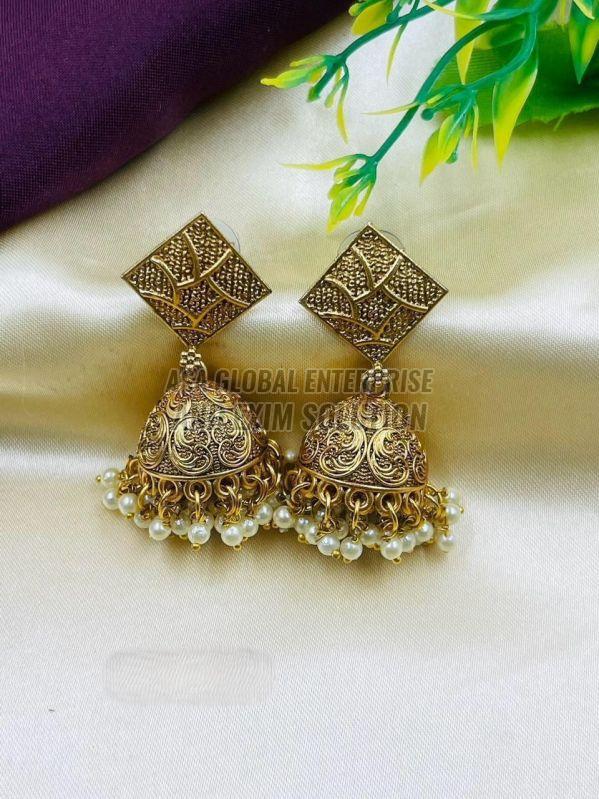 ASA Global Enterprise and Exim Solutions from Thane, Maharashtra, is a trusted ladies brass golden jhumka earring set exporter. Our conventional but attention-seeking, ladies brass golden jhumka earring set is an excellent addition to any ethnic or festive wardrobe. The earrings are made by polished golden brass and have fine pearl work on them which gives them an antique finish. The jhumkas are ideal in wedding outlets, ethnic stores or gift box designers as they portray Indian art in a contemporary manner. Customers love their elegant shape and lightweight feel. Made in India, each set offers durability along with timeless beauty. As a preferred ladies brass golden jhumka earring set exporter, we serve both local and global clients. Get in touch to place your order.