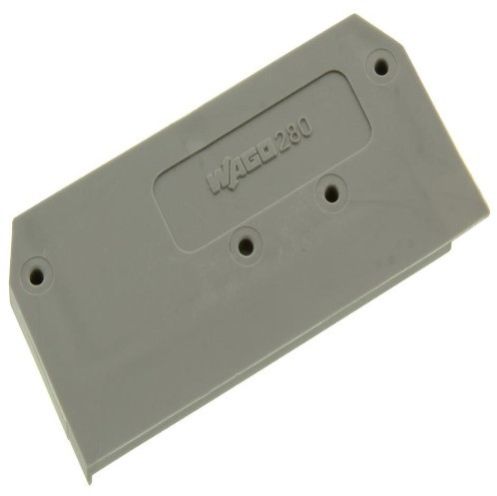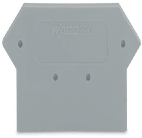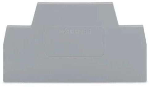 281-334 End and Intermediate Plate (2.5 mm, Gray) from WAGO is designed for separating and insulating terminal blocks on a DIN rail. It ensures safe electrical isolation, organization, and protection in control panels.