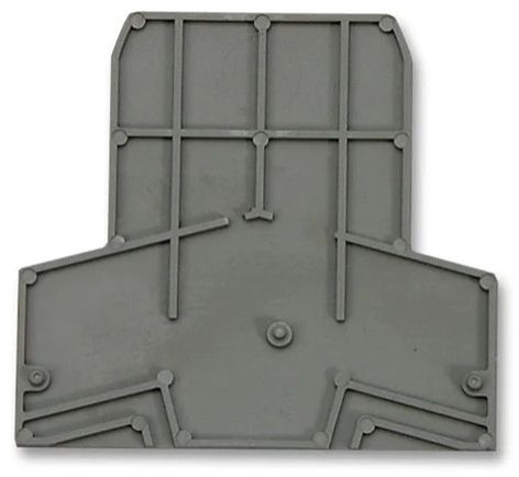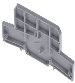 283-325 End and Intermediate Plate (2.5 mm Thick, Gray) from WAGO is used for separating and insulating terminal blocks on a DIN rail. It ensures proper organization, electrical isolation, and safety in control panels.