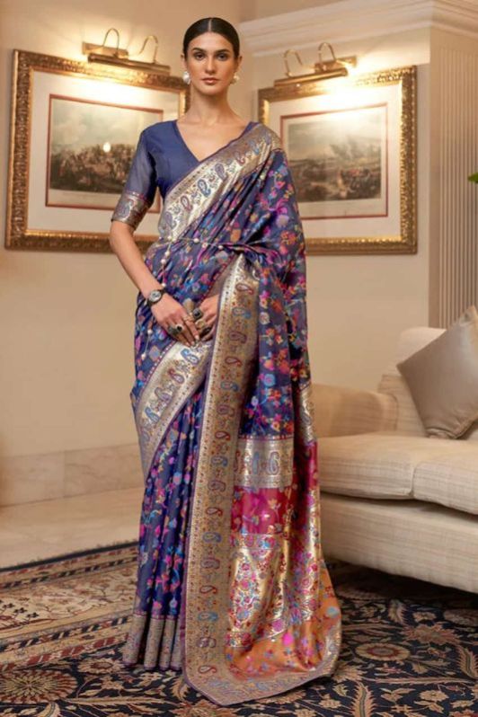 *Exclusive Banarasi cotton Silk, Beautifull design zari weaving with meena multi coloured
