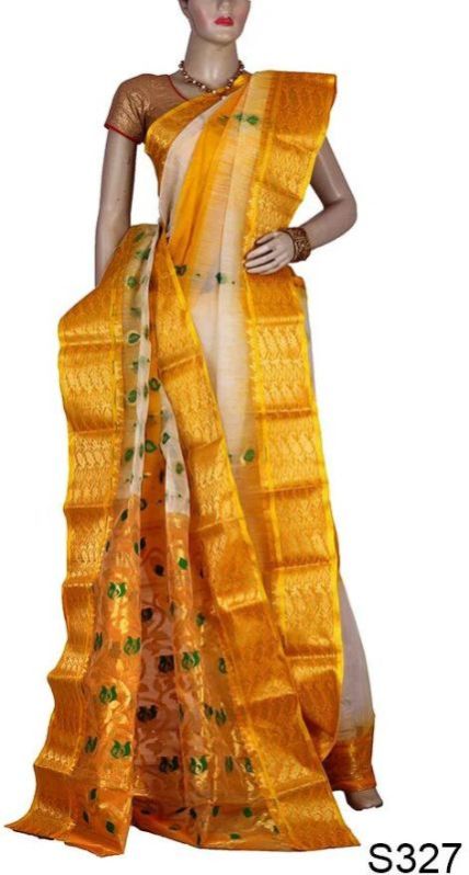 Muslin Silk Saree or Muslin Jamdani Saree is very popular for women. Made from pure Resham Silk. Introducing the Exclusive collections of Pure Resham Silk Muslin Jamdani Saree's. The speciality of the saree is light weight, transparent with hand thread work of geometric pattern & flower This makes the saree quite exclusive in nature also very uncommon mainly for festival purpose. We have also added Govt. Silk Mark tag with the saree.