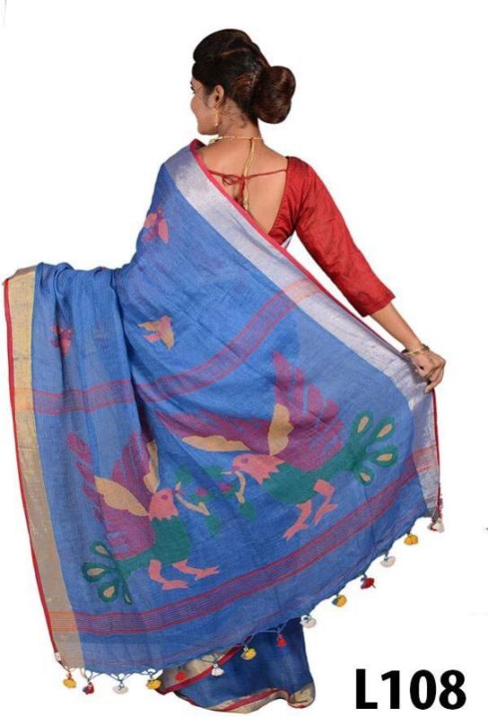 In the modern generation - Stylist Bird Pattern Linen Sari new updation of Handloom Saree's Industry. It is very soft & comfortable with artistic motif design gives you new look. The flower pattern work in different shades of colours adds a different flavour to this saree bringing an uniqueness that is truly unparallel. Matching Blouse piece attach with this Saree.