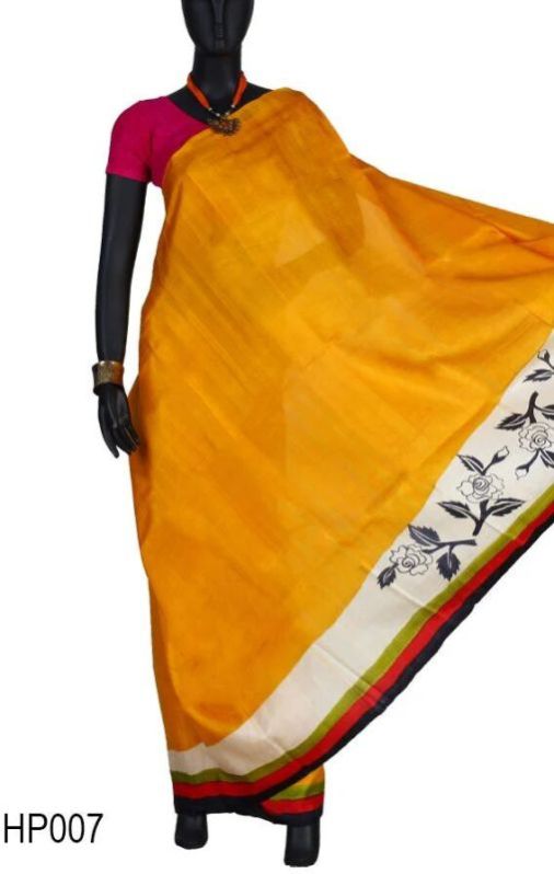 Indulge in the allure of a hand-painted silk saree, a masterpiece of artistry and luxury. Each saree is meticulously hand-painted by skilled artisans, creating unique and captivating designs. The smooth silk fabric adds a lustrous touch, enhancing the richness of the intricate paintings. From floral motifs to abstract patterns, every stroke of the brush tells a story. With its exquisite craftsmanship and elegant drape, the hand-painted silk saree is a wearable work of art that effortlessly elevates any occasion.
