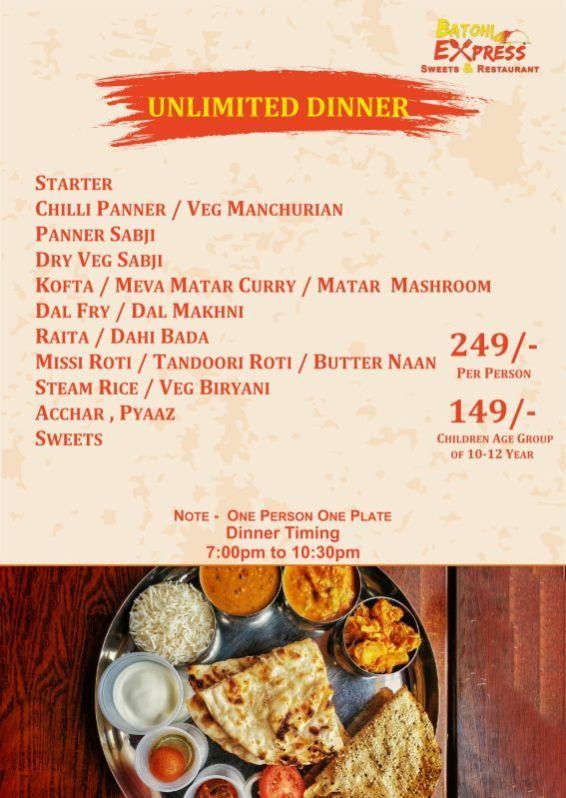 Welcome to Batohi Express, your destination for delightful sweets and a unique dining experience! Our restaurant known as the best restaurant in Raebareli, offering you an unforgettable culinary journey. Whether you're craving classic desserts, exotic confections, or heartwarming meals, our menu is crafted with love and quality ingredients. At Batohi Express, we take pride in creating a cozy and welcoming atmosphere where every guest feels at home. Whether you're stopping by for a quick snack, celebrating a special occasion, or indulging in a delicious treat, our team is here to ensure you have a memorable experience. Come, savor the flavors, and let us sweeten your day! Thank You..