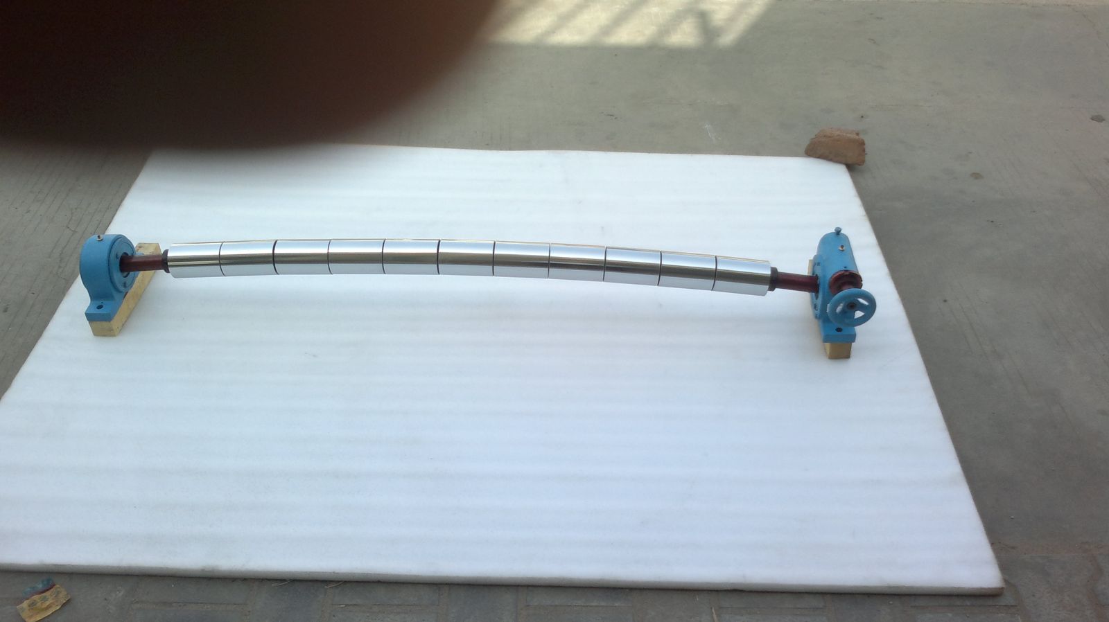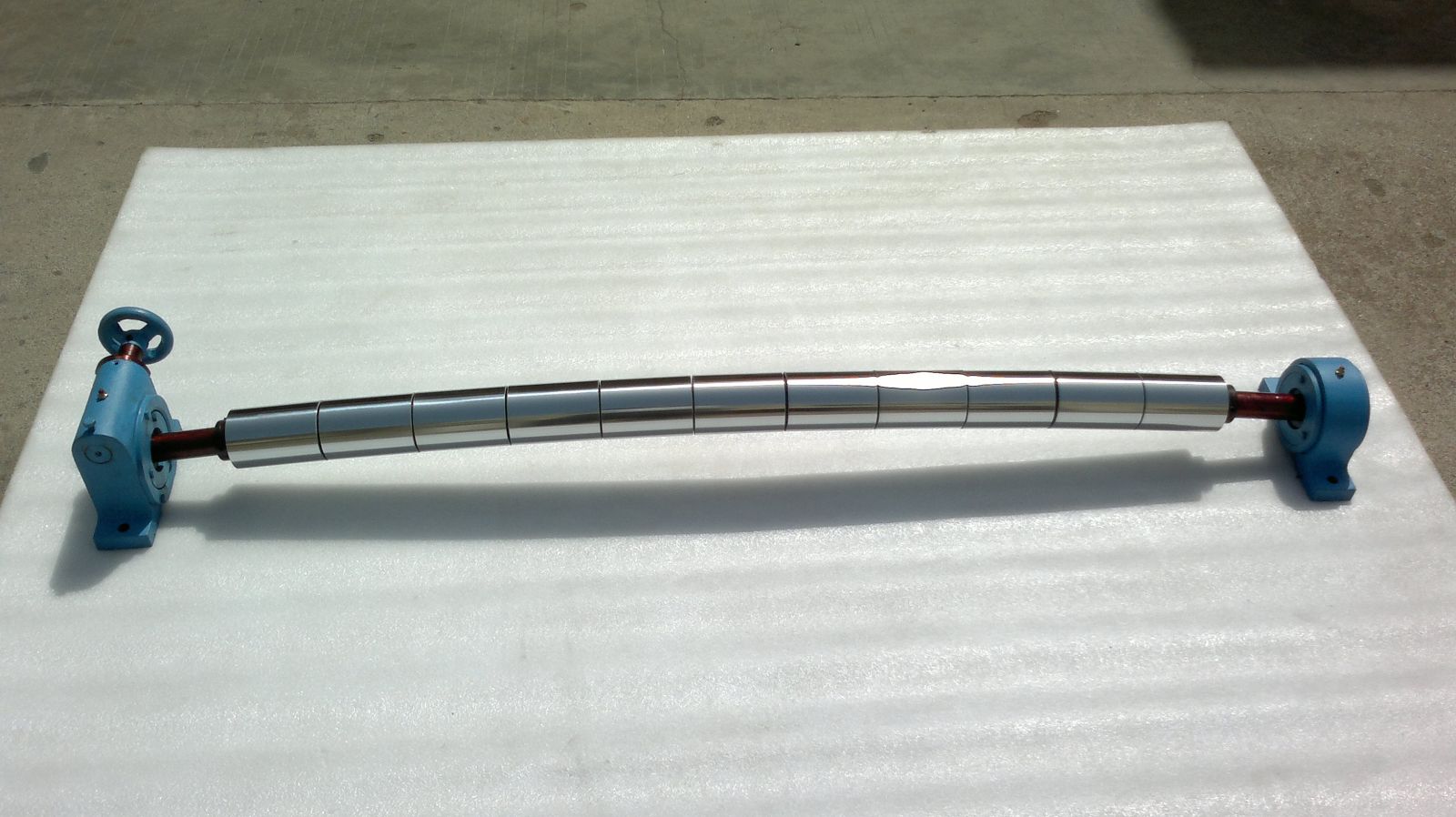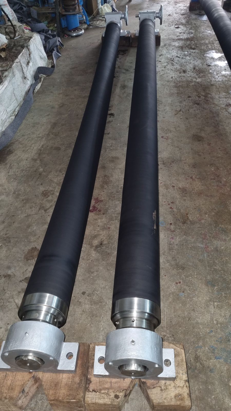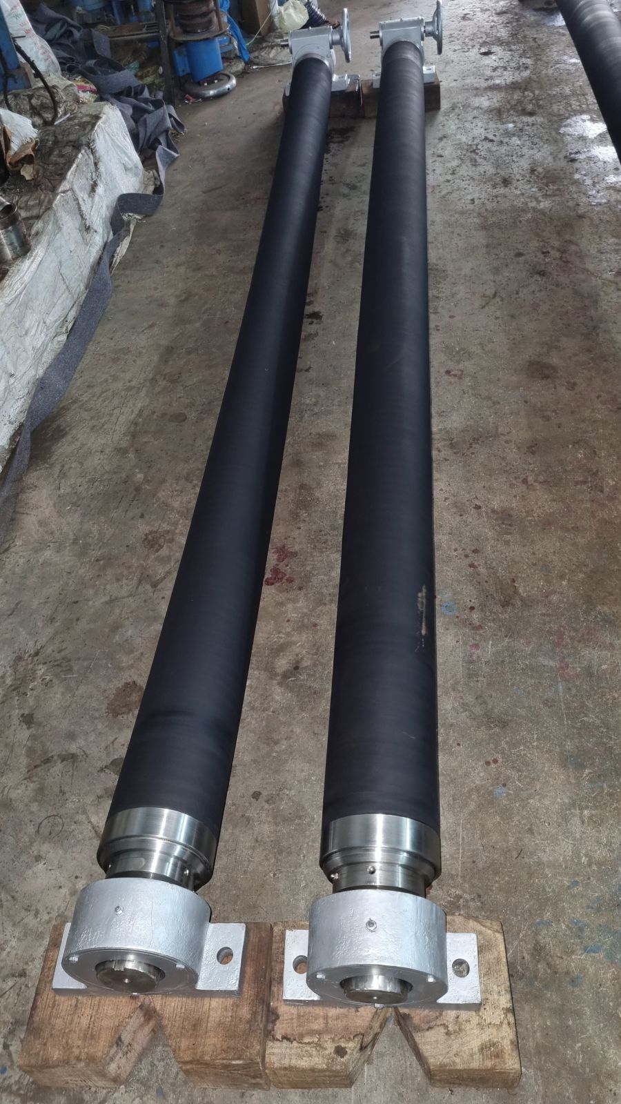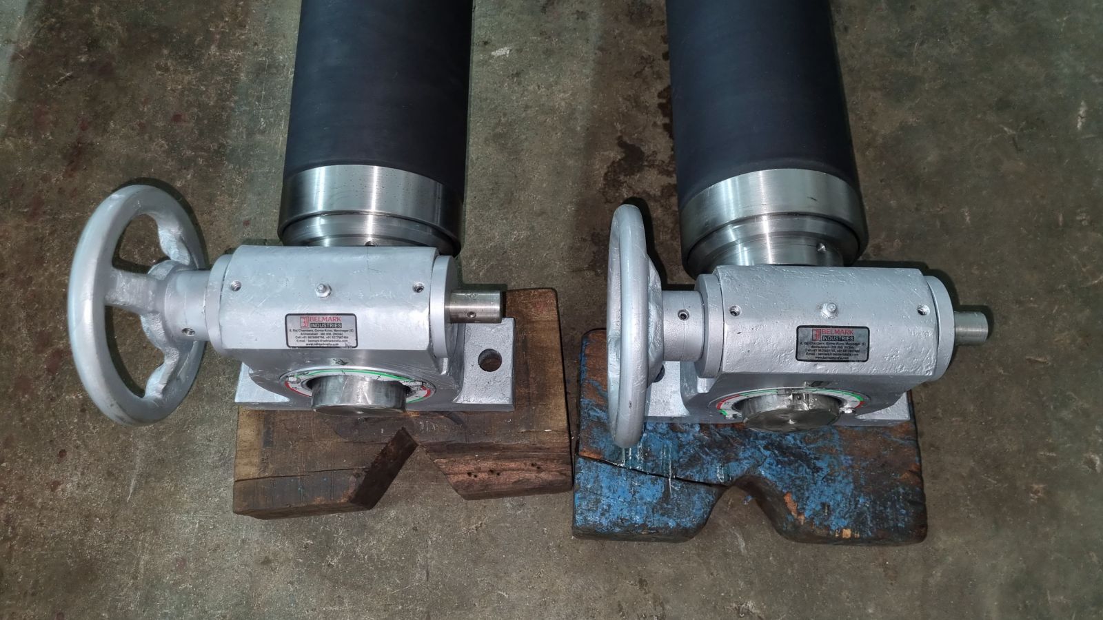 Bowed Spreader rolls are available in hard chrome surface, rubber surface and also Teflon covering for non-sticking applications. Hard chrome surface bow Rolls are used where speed is more than 300 meters per minute. If the speed is more, bigger diameter is used to reduce the rpm of the roll. Bow roll works only when there is proper lead-in and lead-out distance and the roll is kept in proper warp angle with web material. To do such warp angle adjustment, all rolls are supplied with bow angle adjusting worm-worm wheel gearbox with hand wheel and counter pedestal bearing block. With this it is possible to adjust the bow angle at 360 degree warp angle. When the Roll get maximum wrinkle removing stop the bow angle adjusting and put the roll on bow locked position and do not do any change in the bow setting. On shaft bow position is indicated by an arrow showing the bowed position of the Roll.