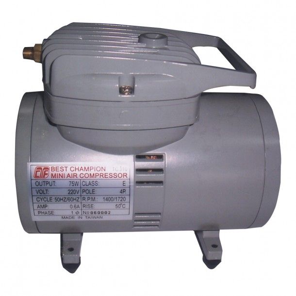 we are offering mini air compressor. output: 75w maximum output : 30psi use pressure : 25 psi air displacement : 2.0 cfm work of art spray gun for mold large fish cistern(for conveying air) pneumatic screw driver cleaning gun low pressure spray gun mending gun (under 0.5mm)