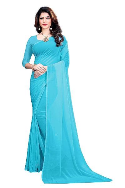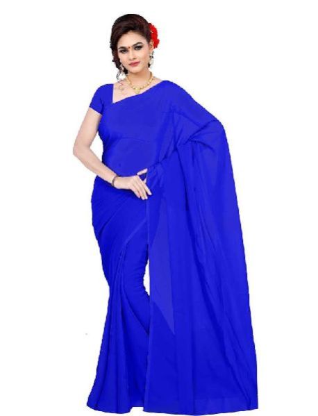 PLAIN SAREE GORGATE FABRIC EXPORT QUALITY HOME WASHABLE 6.30 size with blouse piece A LOT OF COLOURS AVAILABLE running unstitched blouse piecedry clean or hand wash. 5.30 mts saree with 80 cms unstitched blouse piece premium quality superb printed saree with blouse piece