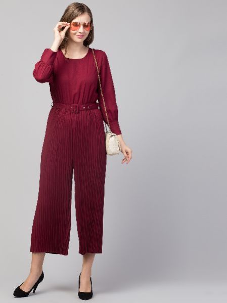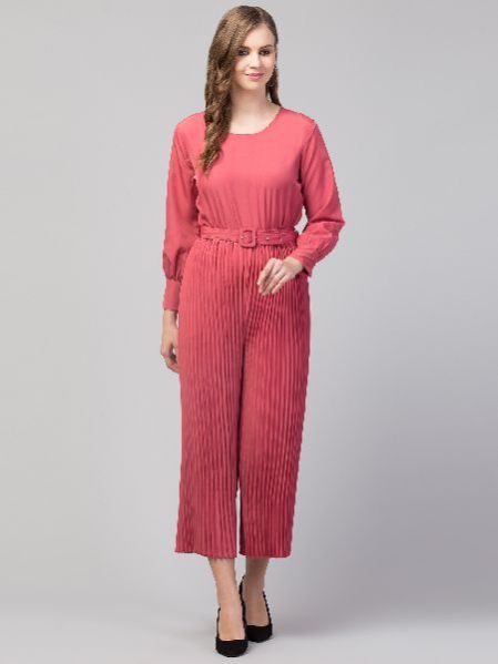 Description- Elevate your look with this ever-so-charming in Pleated & Gathered Belted Style Long Sleeves Round Neck Conceal Zipper on back Solid Jumpsuit . Comfortable with fine quality stitching and material. Good quality fabric and good quality of stitching provides it a perfect look.