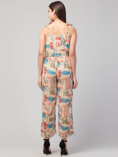 Women Girls Tie-up Shoulder Straps Printed Georgette Flared Jumpsuit