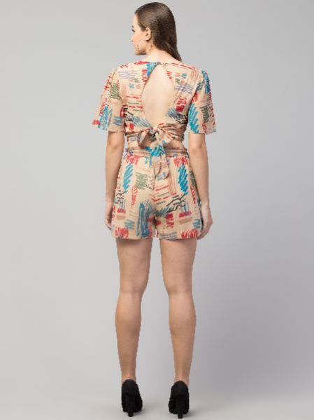 Description- Features a multi-colored cropped tie-back top in a georgette base with abstract prints. It is paired with matching shorts. This co-ord set comes with elasticated printed tie-up paperbag waist shorts. The lining is also attached to the top and shorts. Enhance your wardrobe by perfectly encapsulating your sense of style. Comfortable with fine quality stitching and material.